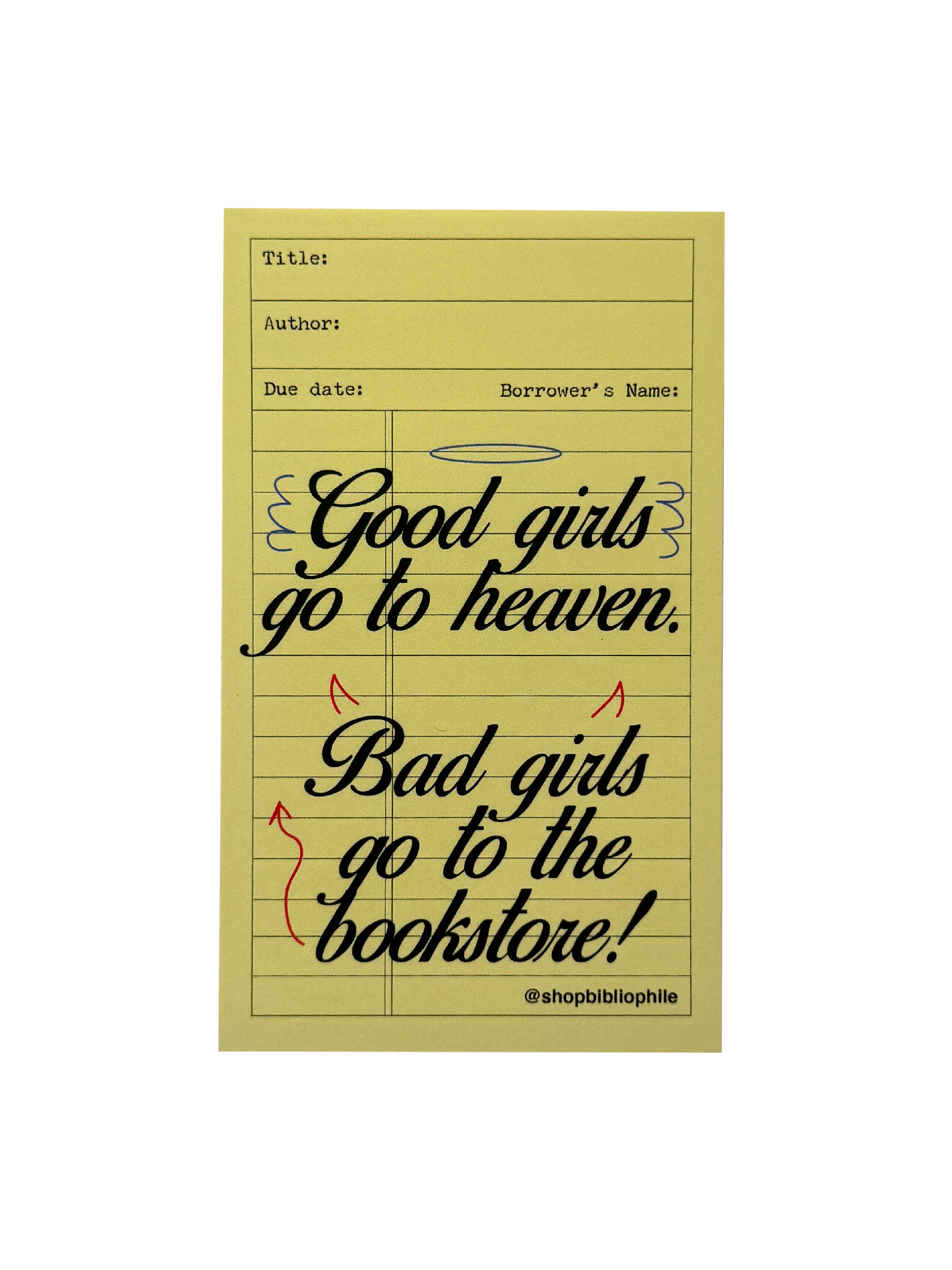 1 - 3" x 5" "Good girls good to heaven, bad girls go to the bookstore" sticker.