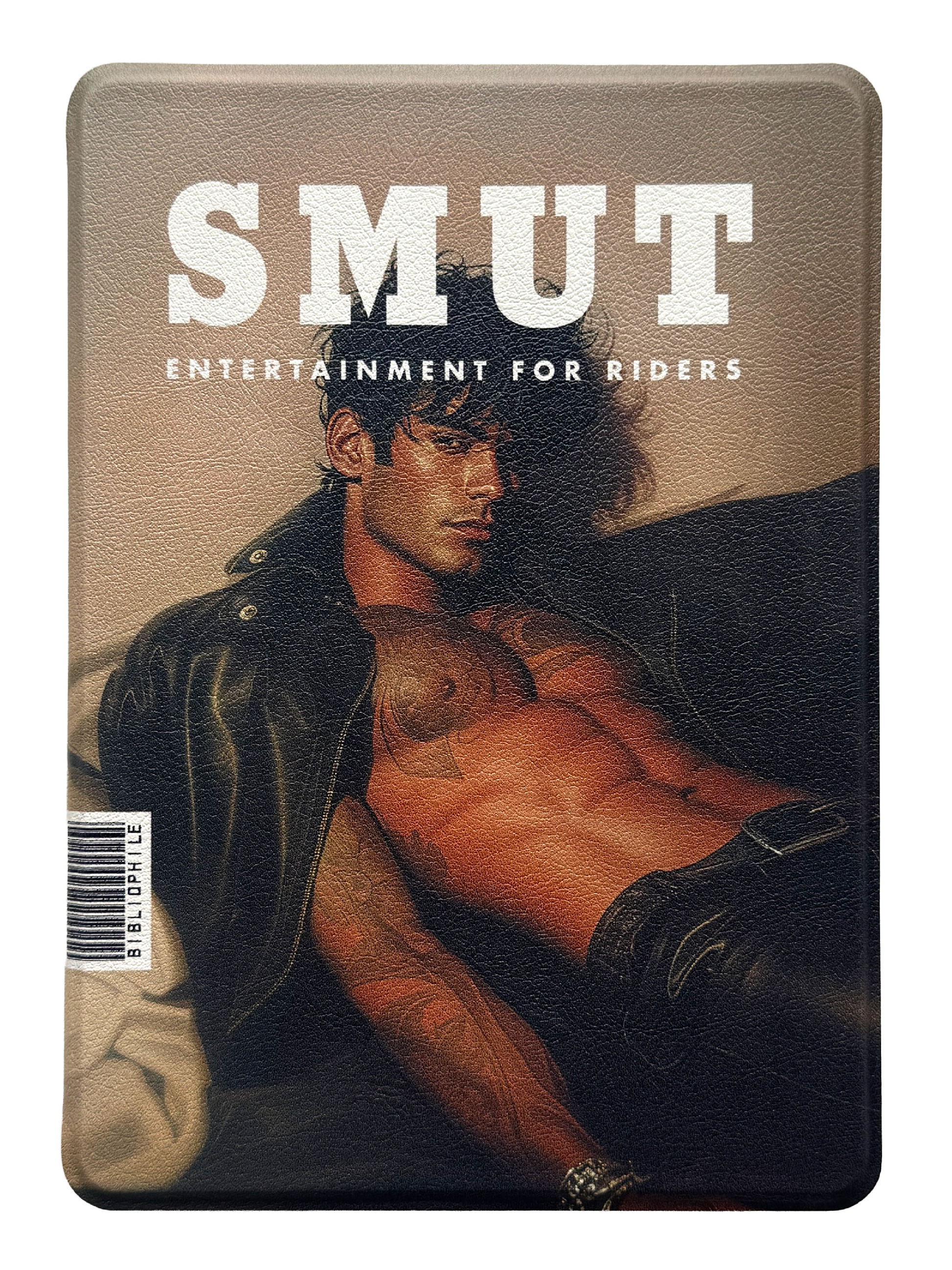 Design is printed on a vegan leather Kindle case. Wearing on the edges with use is normal, we picked the leather finish on purpose to give it that worn-in vintage feel.